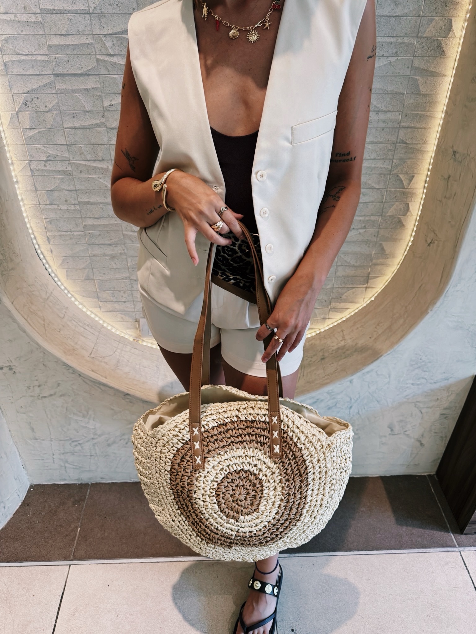 Modelo Tachas: Presenta una hilera de tachas circulares planas en color plata que recorren todo el largo, ideal para un estilo más rockero.